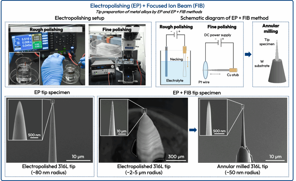 Atom probe specimens are very fine needle-shaped tips, with apex diameter of less than 100 nm. They are commonly prepared by focused ion beam (FIB) following an established ‘recipe’ of ROI extraction and annular milling.