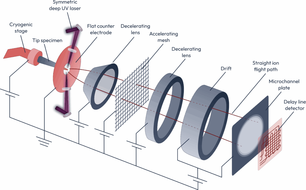- Dual-beam deep UV (257.5nm wavelength) with symmetric dual illumination to ensure uniform field evaporation for higher yield and greater analysis volume of a wide range of materials (metals, semiconductors, ceramics).